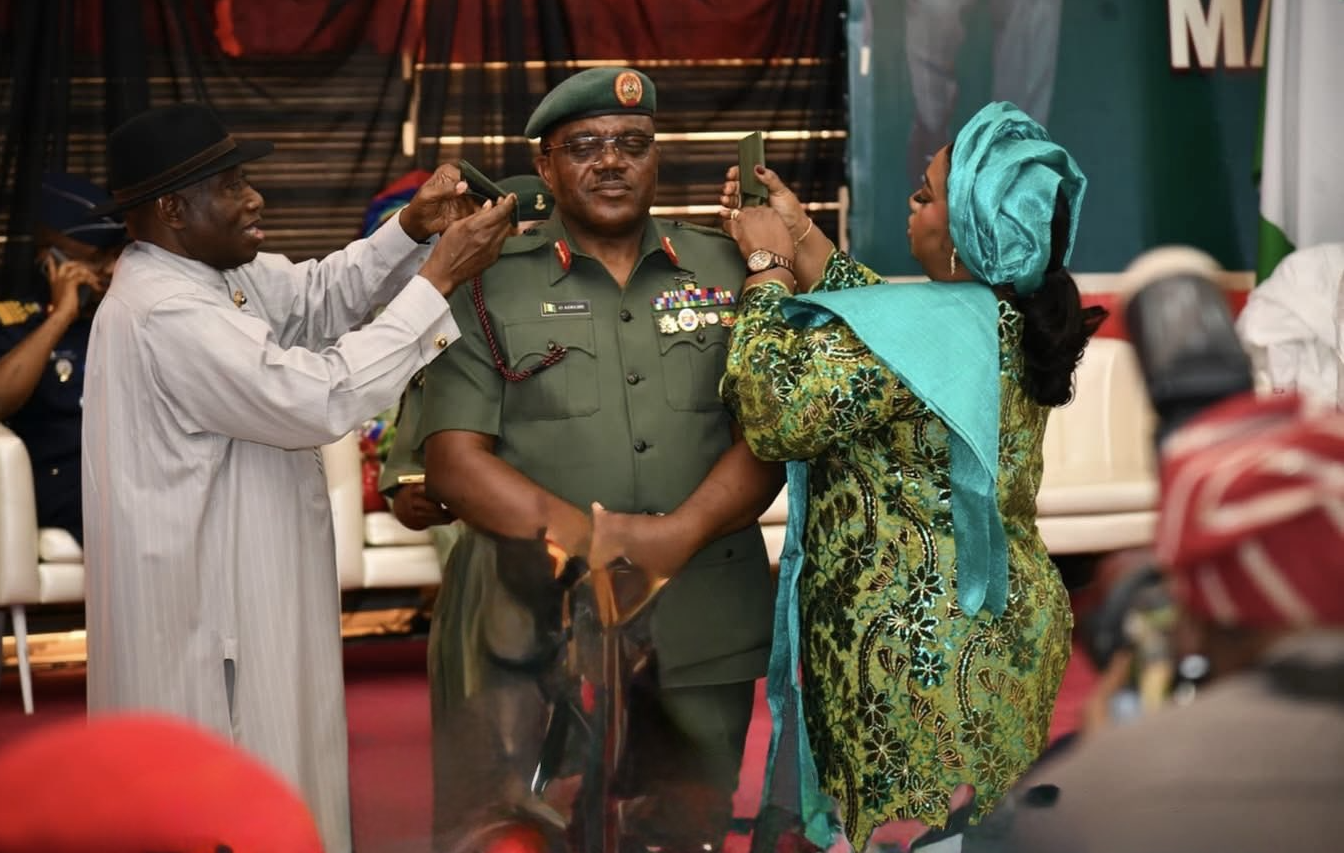 Former President Goodluck Ebele Jonathan has decorated his former Aide-De-Camp (ADC), Brigadier General Ojogbane Adegbe, with the prestigious rank of Major General in the Nigerian Army. The brief but symbolic ceremony, held in Abuja, celebrated the career progression of an officer who served as Jonathan’s ADC during his presidency from 2010 to 2015.